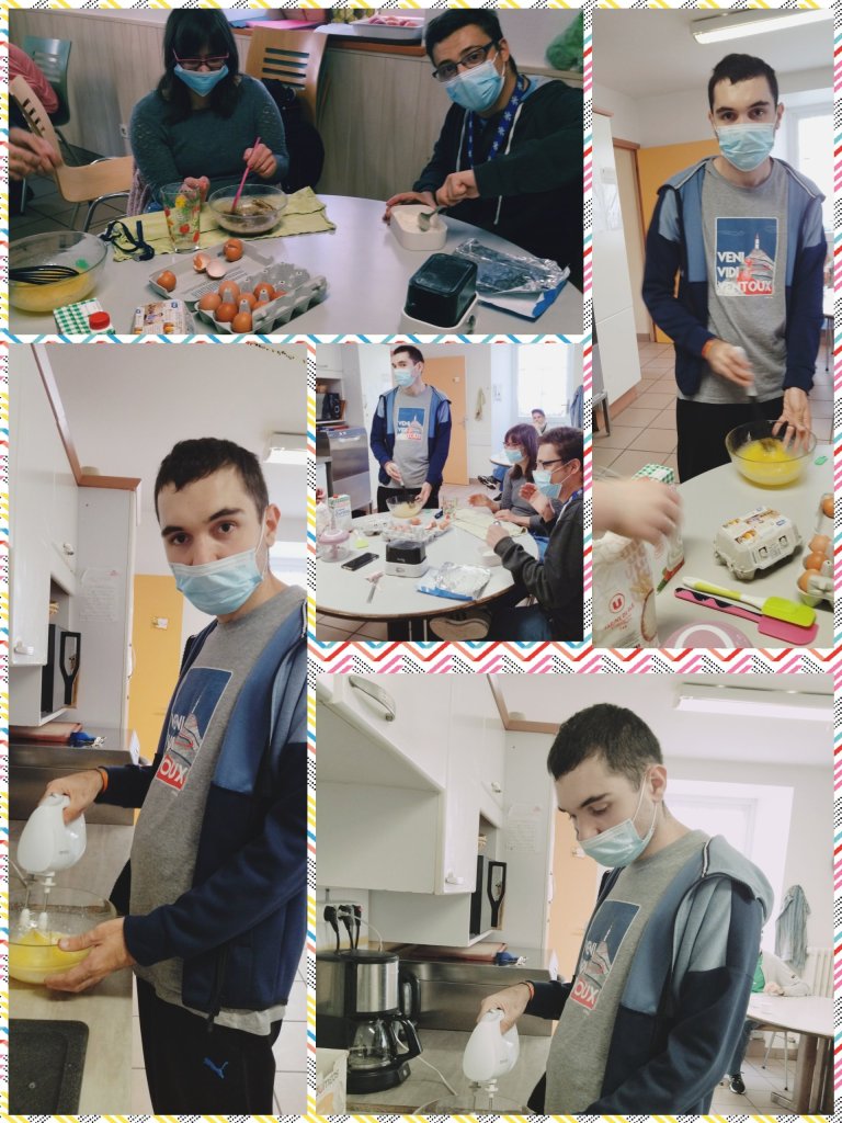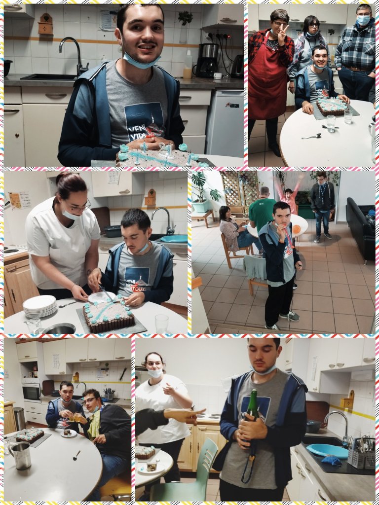 Thomas a fêté ses 21 ans en appréciant confectionner son gâteau d’anniversaire avec l’aide d’Océane ( AES remplaçante) mais aussi d’autres résidents. De quoi faire la fête et faire sauter le bouchon de champagne !